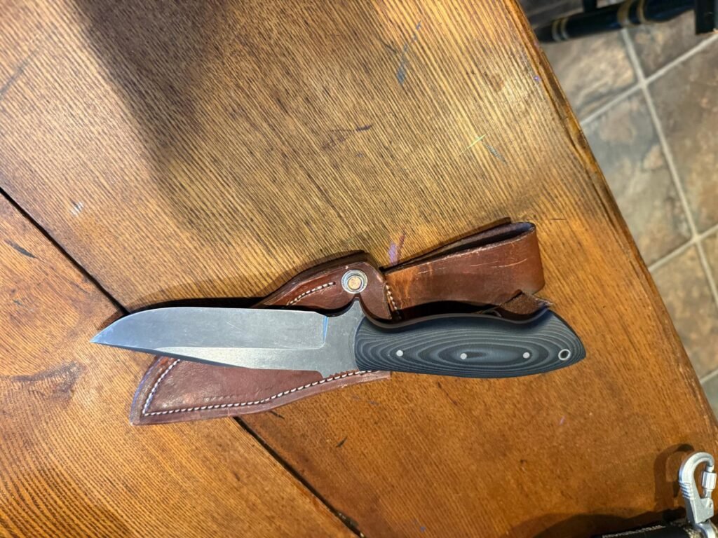 3. The Huntfishdine Tony Baker Walking around knife is made from acid-washed 3/16 SV90 blade stock, which holds an edge extremely well. Handle material is Black and Grey Micarta. Overall Blade length is 5 9/16” : Cutting surface is 4 5/8” Clip Point. Finger choil and jimped thumb ramp. Comes with a heavy-duty handmade sheath. This is a limited-edition run in SV90 steel; only 12 will be made. I have the 1st, so Thirteen in Total. These are once-in-a-lifetime knives, and you will not be disappointed. Priced at $700.00 each.